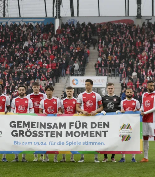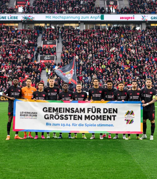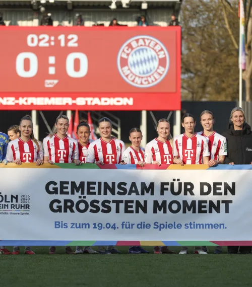 Die Aktionen in den Stadien und Arenen Nordrhein-Westfalens standen ganz unter dem Motto „Gemeinsam für den größten Moment“. Gebrandete Eckfahnen, Banner auf dem Spielfeld, Einlaufaktionen sowie Trikot-Badges und eine umfassende digitale Kommunikation machten die Olympiabewerbung sicht- und erlebbar.
